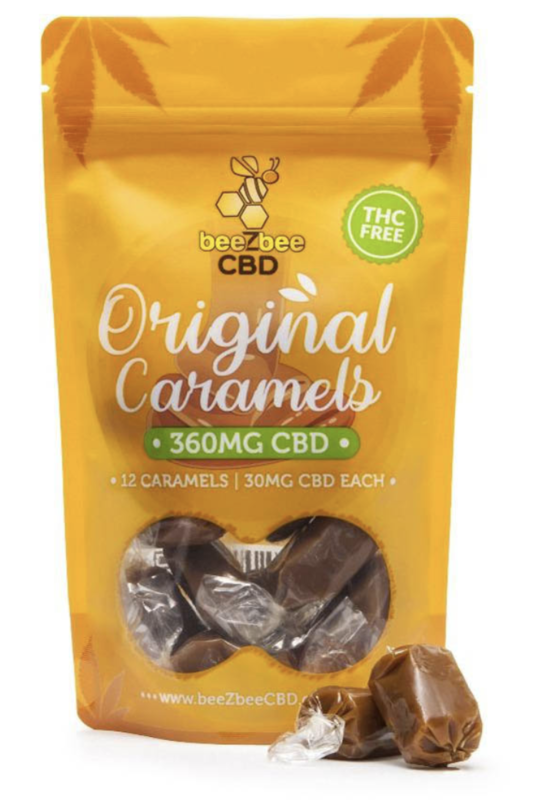 CBD Caramels - 30mg THC Free CBD caramels, bag of 12 caramels | Case of 8 bags